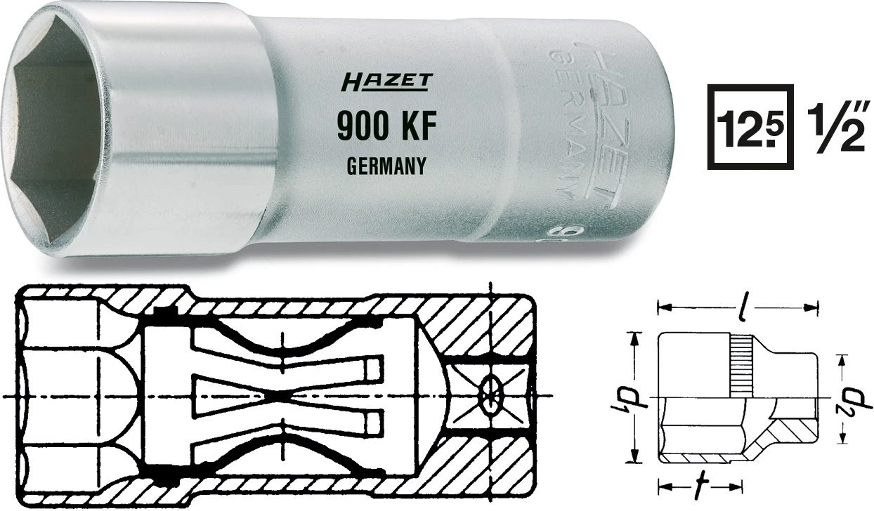 HAZET Zündkerzen-Steckschlüssel-Einsatz 12,5mm 1/2 Zoll Außen-Sechskant 20.8 900KFh